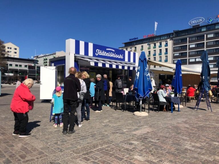 “Jäätelölahjakortti oli helppo ja edullinen tapa ilahduttaa asiakkaita. Moni sanoi jälkeenpäin, että torilla nautittu jäätelö piristi päivää.”